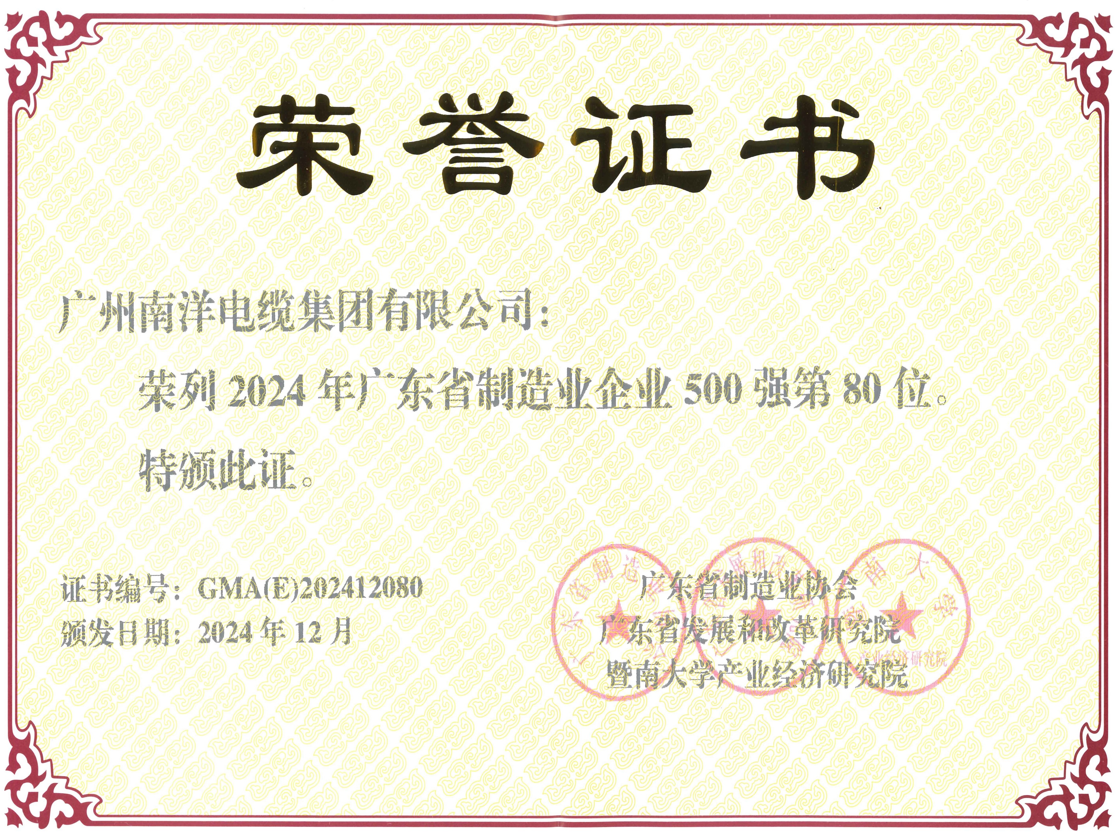 廣東線纜行業(yè)最具競(jìng)爭(zhēng)力企業(yè)第一名、中國(guó)線纜行業(yè)最具競(jìng)爭(zhēng)力企業(yè)20強(qiáng)、華南地區(qū)電線電纜研發(fā)制造龍頭企業(yè)